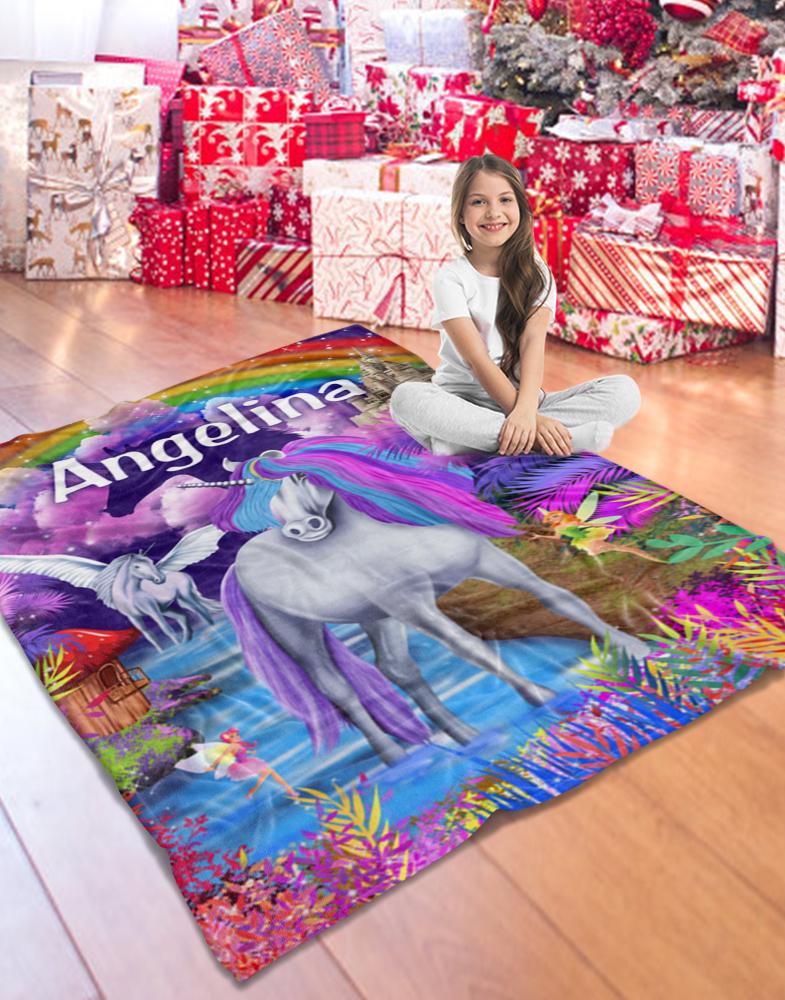This is the best personalized gift any unicorn lover could ask for and is a perfect blanket for travel or home.