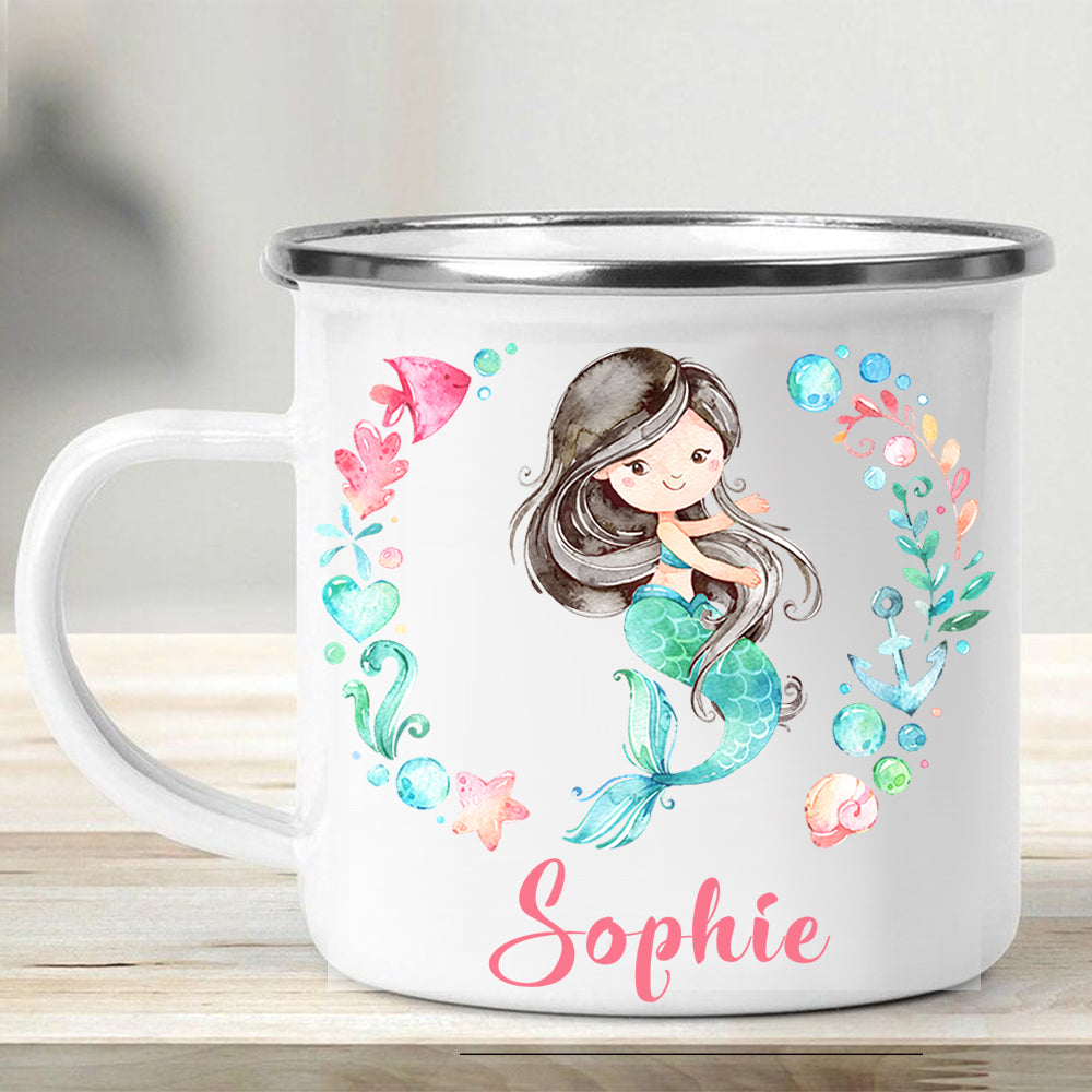 Custom Name Mermaid Enamel Campfire Mug II